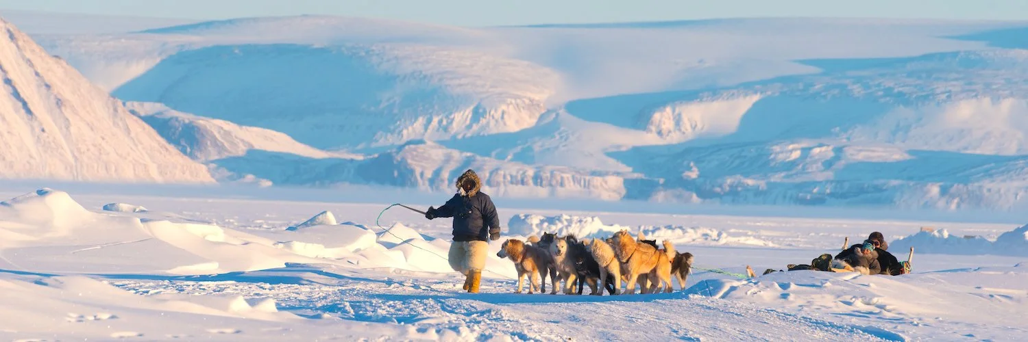 Polar Inughuit Family Heading Home Over the Sea Ice - Qaanaaq, Thule, Greenland